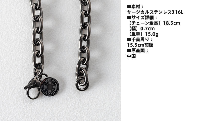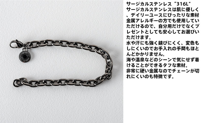 ライオンハート 別注 ウェアラブル チェーンブレスレット サージカルステンレス316L TYPE B アズキ ガンメタブラック 03br002bwy