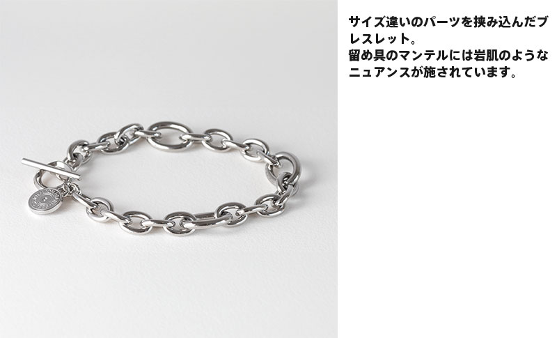 サイズ違いのパーツを挟み込んだブレスレット。